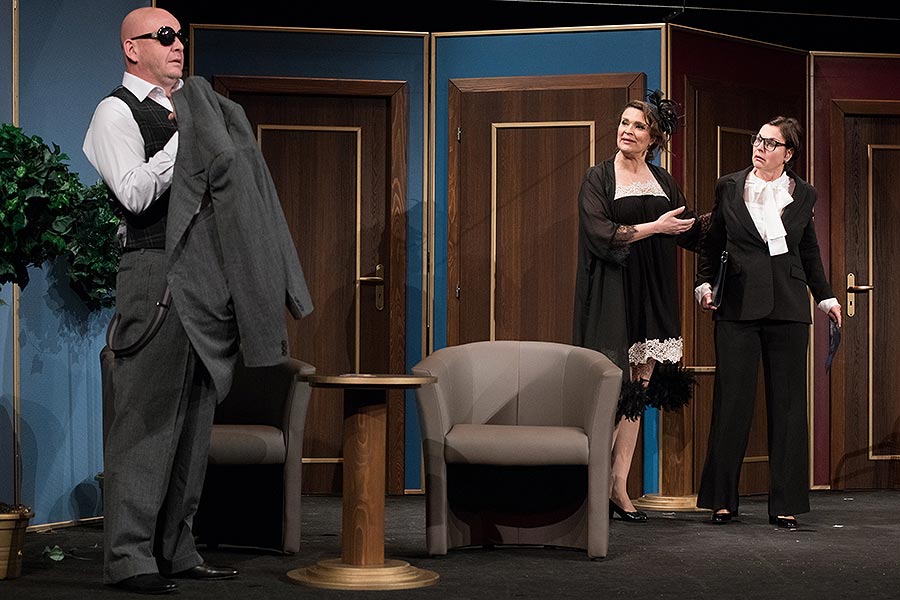 Pavel Nečas, Mahulena Bočanová, Pavla Vojáčková v komedii Velké lásky v malém hotelu, foto: Pavel Průcha